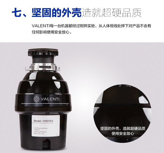 意大利VALENTI 家用廚房食物垃圾處理器處理機粉碎機重載型VWD701
